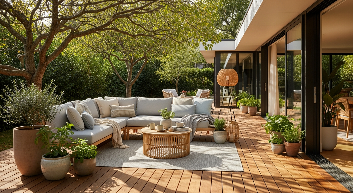 Dekoracija igra važnu ulogu u definiranju stila i atmosfere vanjskog prostora. Rasvjeta je ključna za stvaranje ugodne atmosfere navečer – razmislite o solarnim lampama, vijencima žaruljica ili lanternama. Tekstil, poput jastuka, pokrivača i vanjskih zavjesa, dodaje boju, udobnost i privatnost. Ne zaboravite na funkcionalne dekorativne elemente poput vanjskih tepiha koji definiraju prostor i dodaju toplinu. Biljke u dekorativnim teglama, fontane ili umjetnički predmeti mogu dodatno personalizirati vaš kutak za opuštanje na otvorenom i stvoriti jedinstveni životni stil.